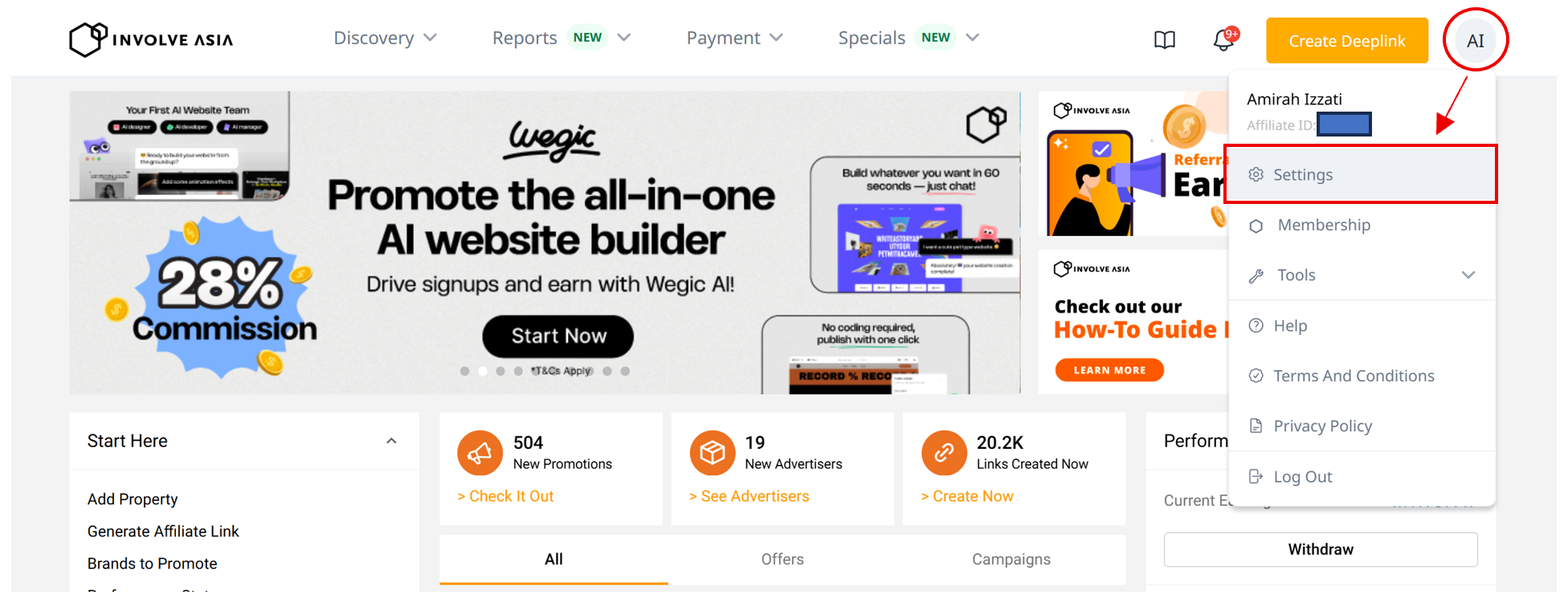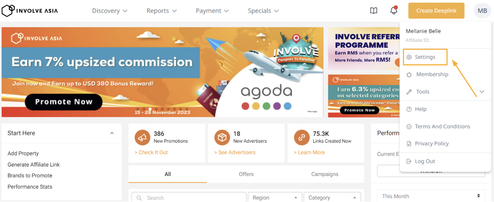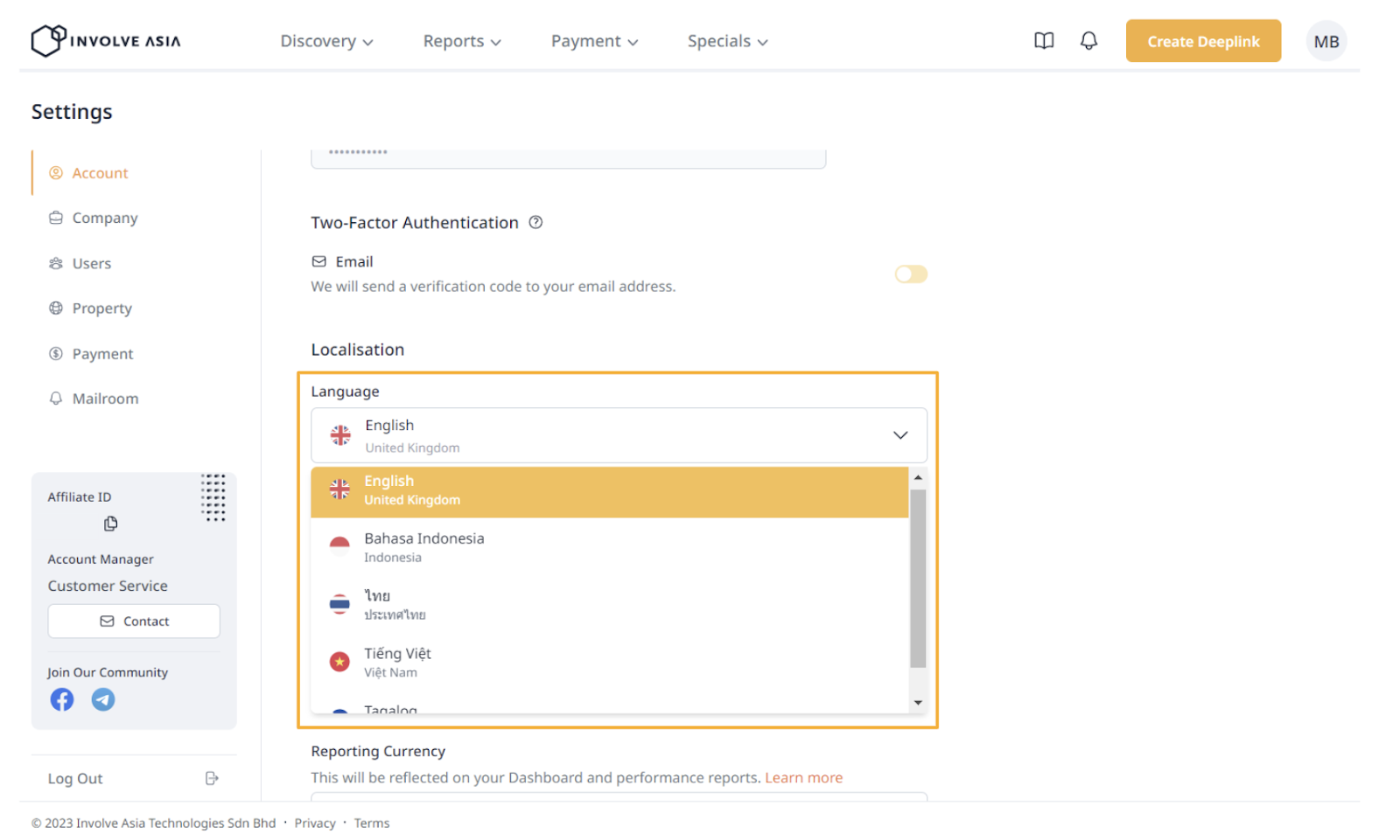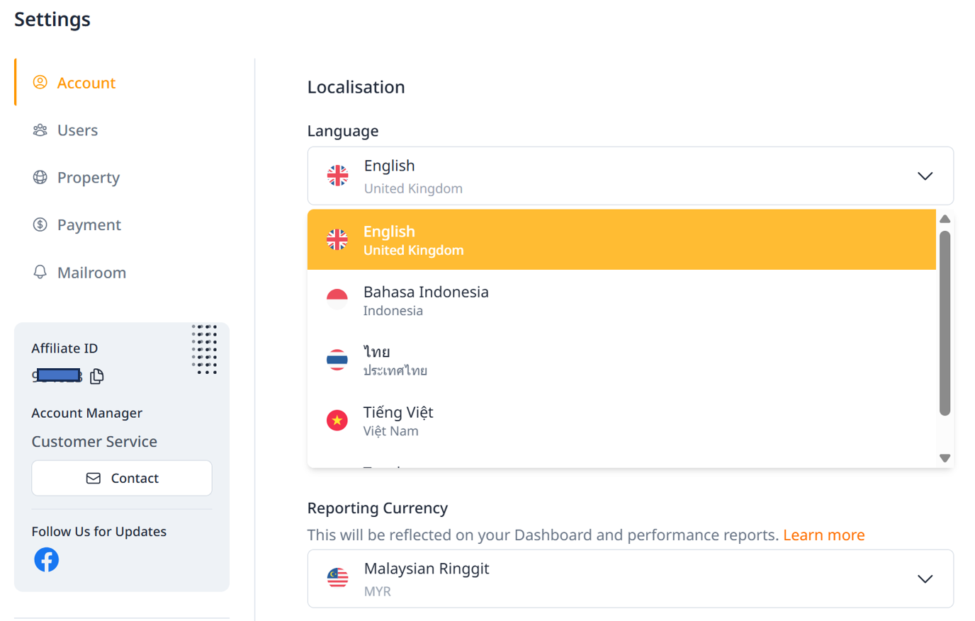 Customising these settings makes it easier to navigate your account and track earnings in the way you prefer.