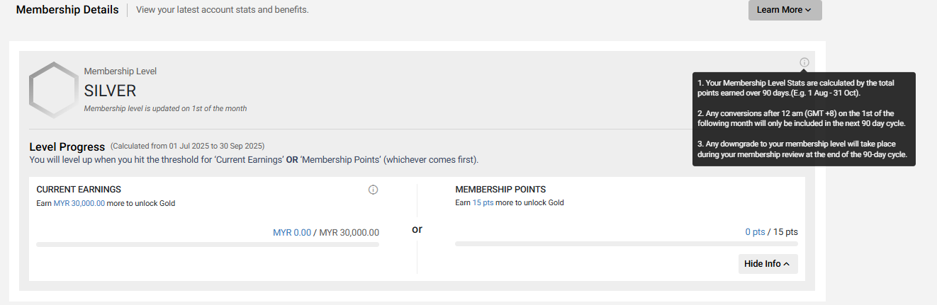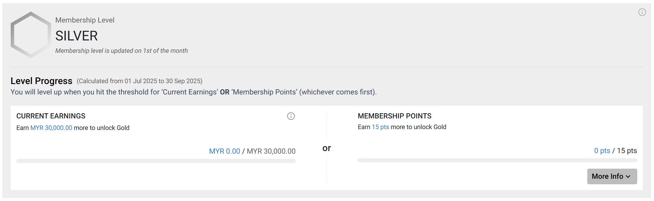 You are not required to unlock both your Earnings and Membership Points to move up. You only need to unlock either one of these criteria to progress to the next membership tier. Option 1: Reach the required Earnings threshold. Option 2: Accumulate ...