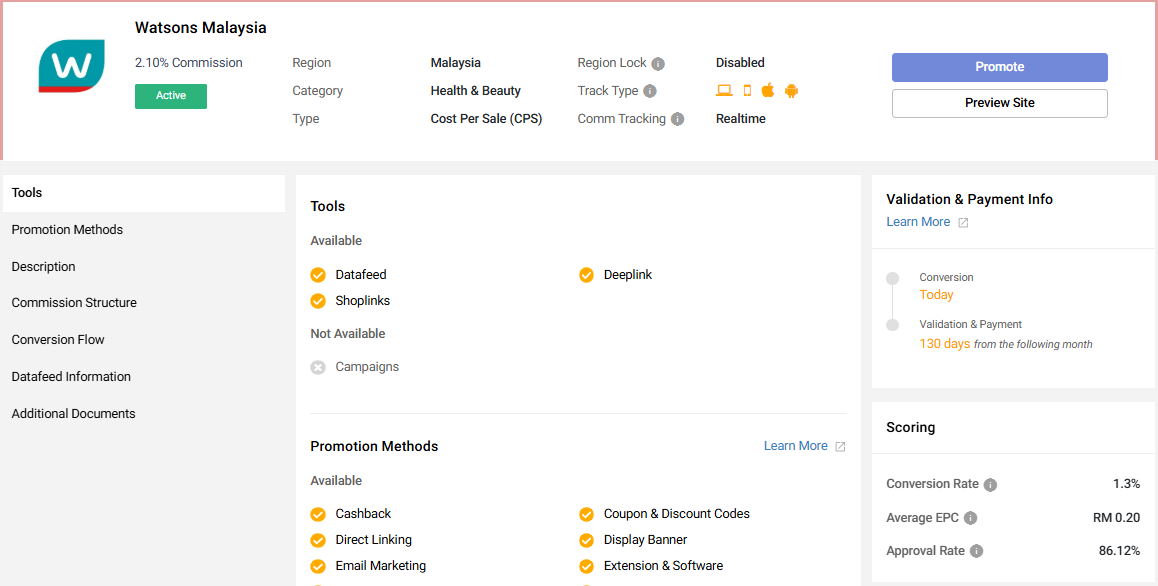 Earnings Per Conversion (EPC) indicates how much you earn per successful conversion.