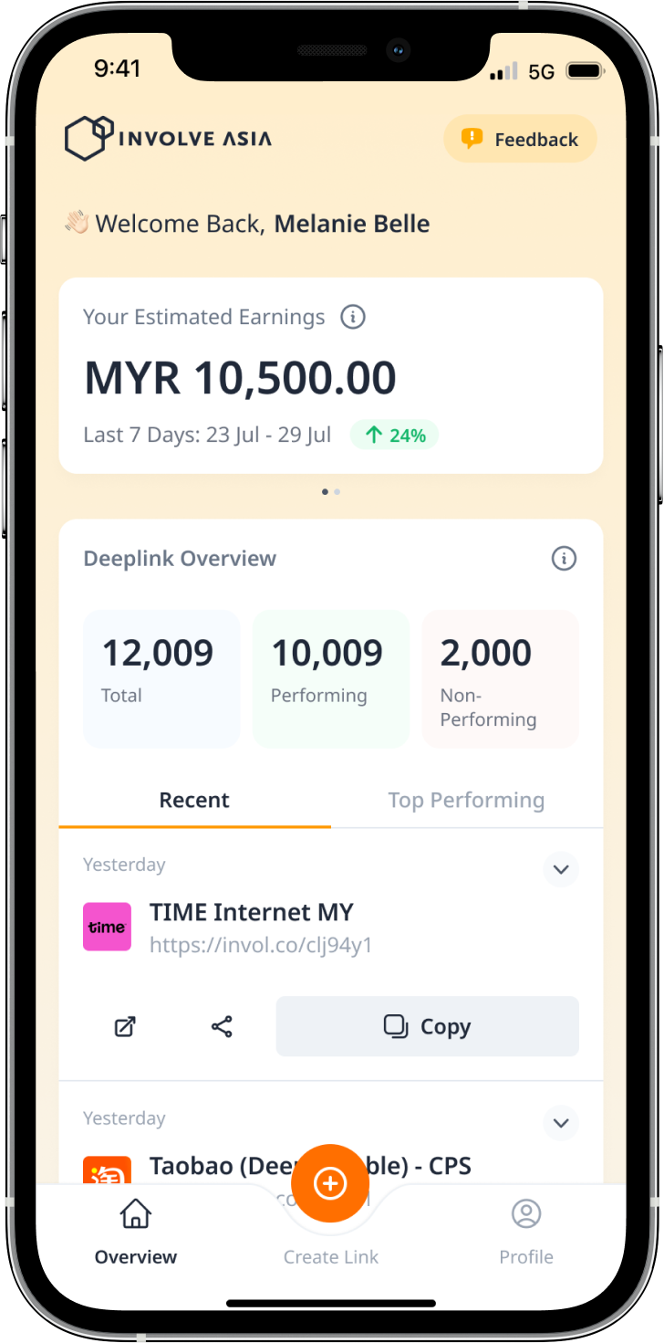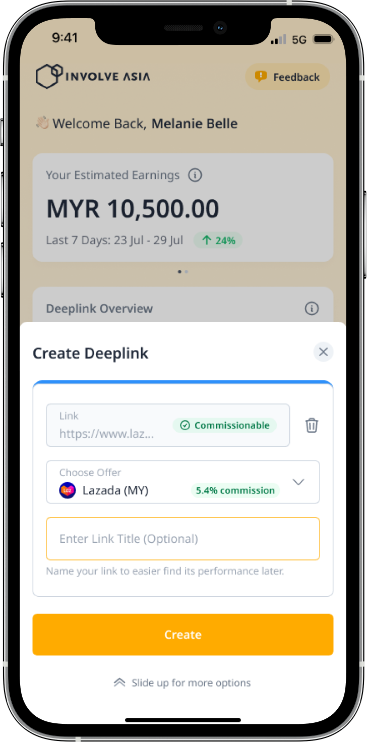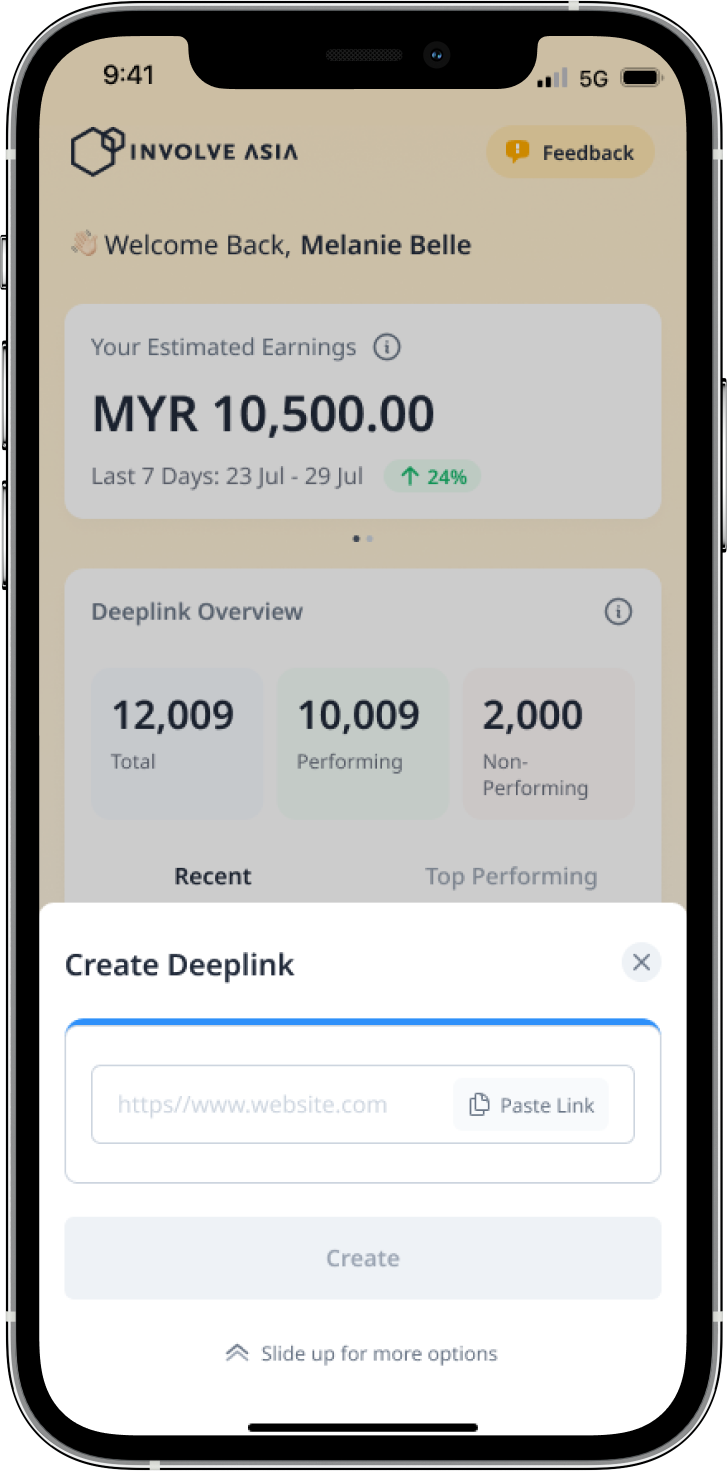 A deeplink is your unique affiliate link that sends users directly to a product or page on an advertiser’s site — and tracks the conversion back to you. With the Involve Asia Mobile App, you can generate deeplinks anytime, anywhere, and start promoting instantly.