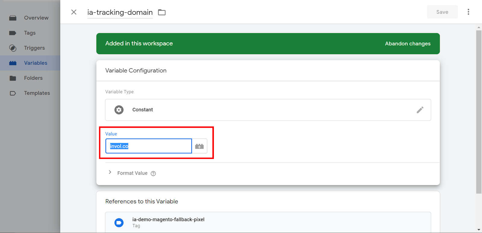 18. Locate ia-tracking-domain. Click on it to change the value.