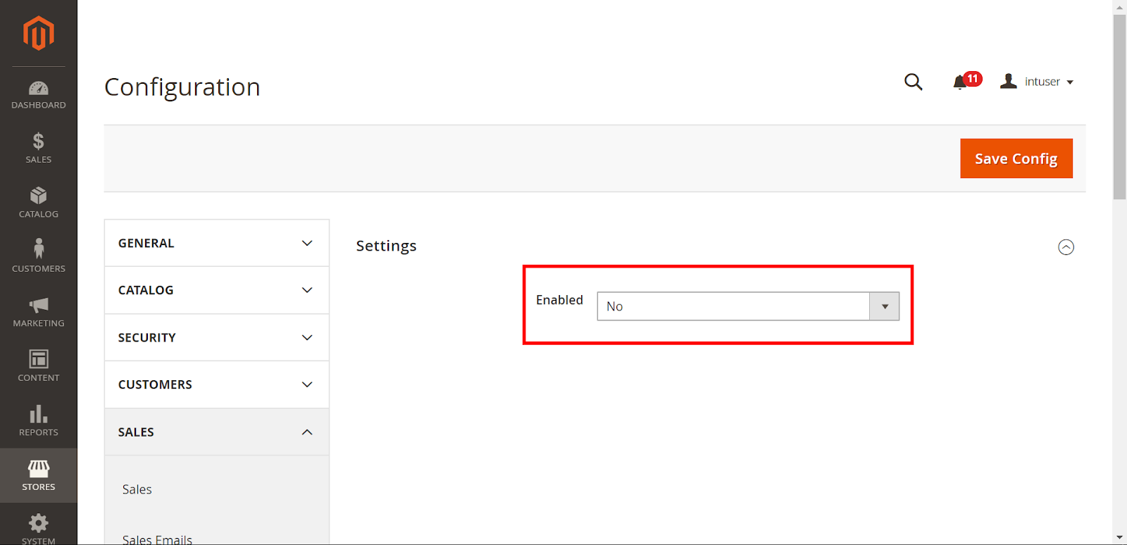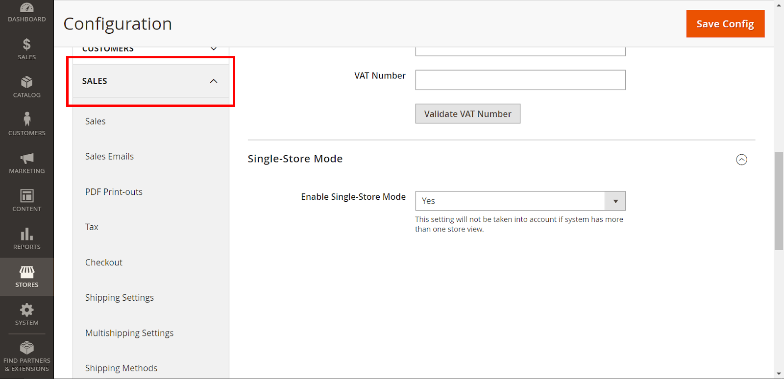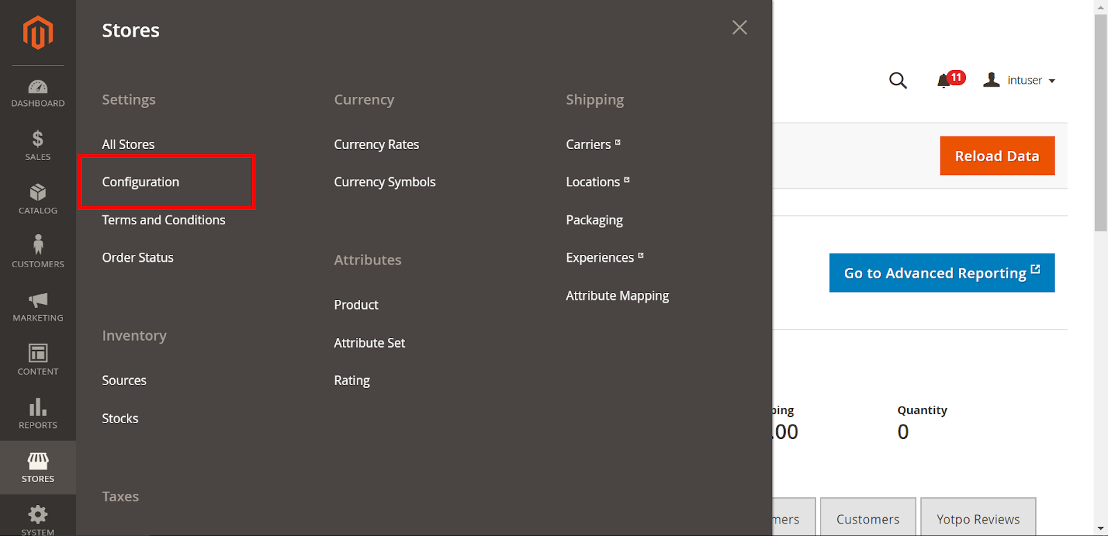 5. From the sidebar in the admin dashboard, navigate to Stores, then Configuration.