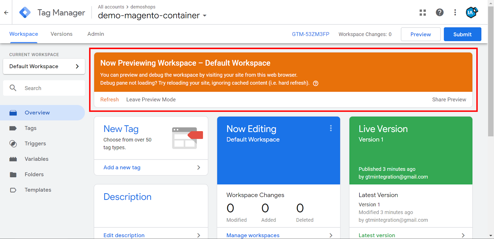 After following the steps, you'd have successfully installed a GTM plugin on your Magento website, and completed the first section of this guide.