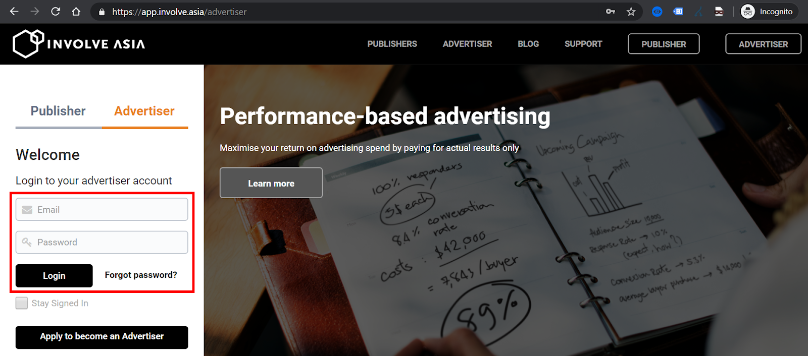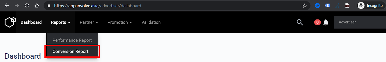 12. Afterward, check if the conversion data was properly captured in the Involve platform. Login to your Involve dashboard.