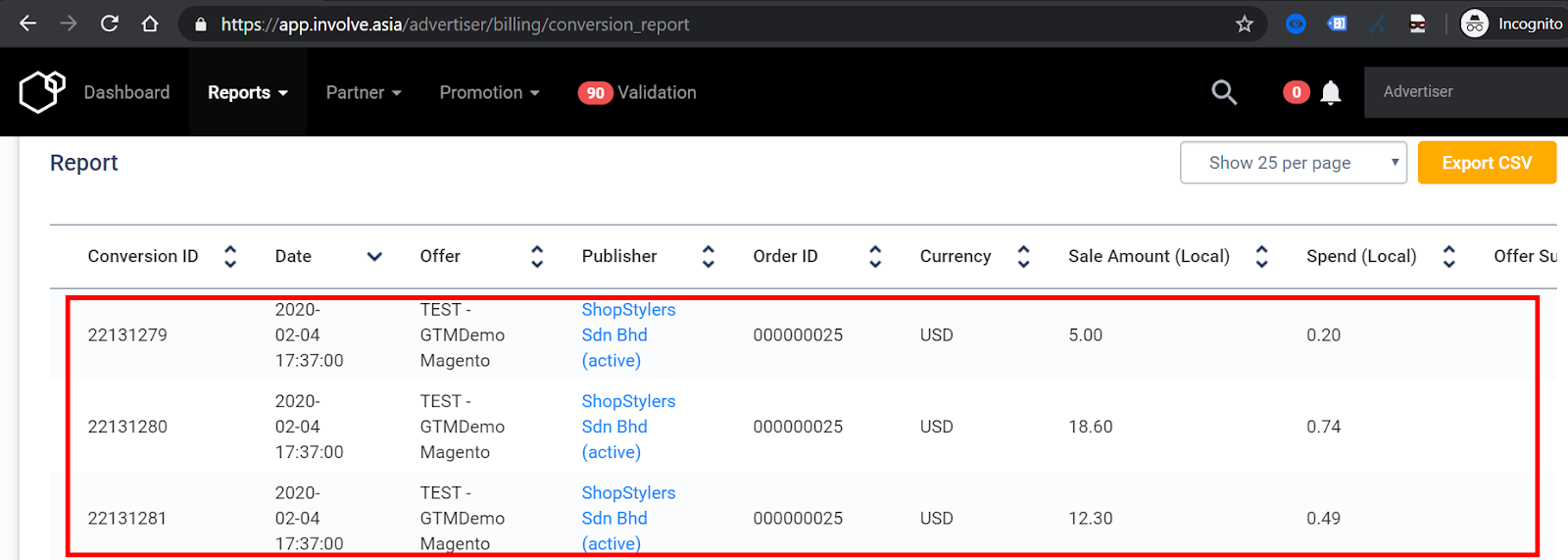 After following the steps, you'd have successfully tested conversion tracking using the test Involve Asia tag on your Magento website, and completed the last section of this guide.