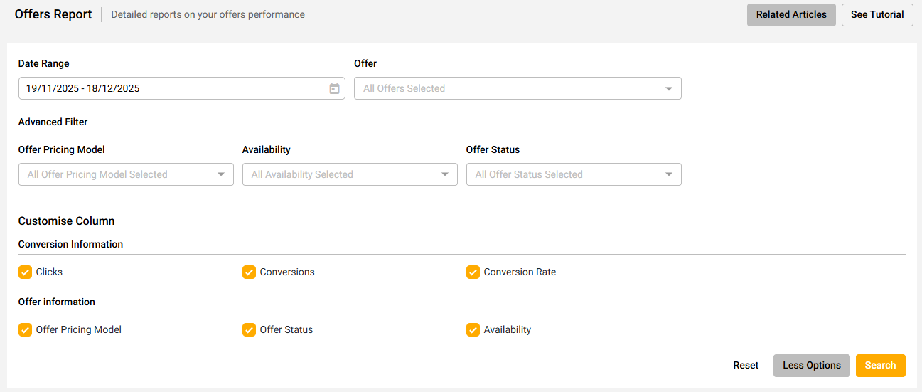 Tip: Need extra help? Click See Tutorial on your dashboard to learn more about how the Offers Report works.