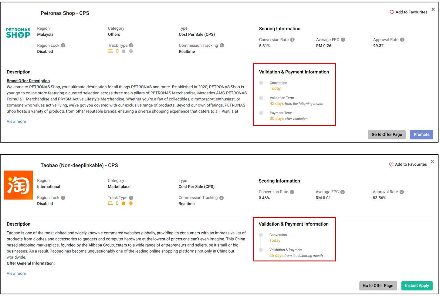 Depending on the offer’s terms, validation may take 14–60 days (or more for specific verticals such as travel).