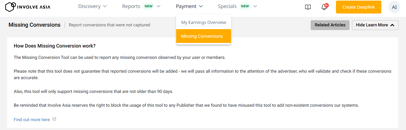 If you’ve checked all the above and still believe a conversion is missing, you can submit a request using the Missing Conversion Tool in your publisher dashboard.